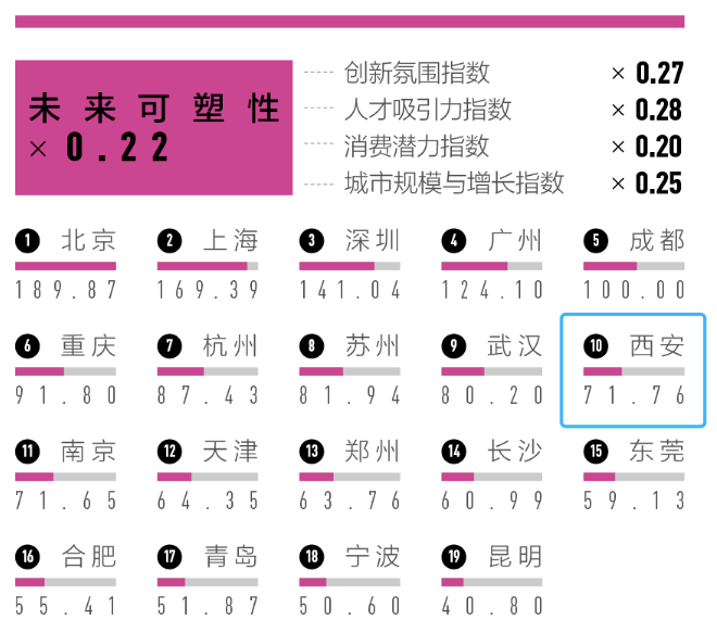 这是该榜单连续第8年发布,西安今年再度上榜,在15个新一线城市中排名第六。