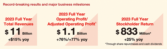 这封由其首席执行官屈翠容署名的信件特别提及,回馈股东和提高资本投资回报一直是公司关注的重点。“2023年,我们通过股息和股票回购的方式共计回馈股东8.33亿美元,创历史新高,占我们经营利润的75%,这也使得我们自2016年底分拆上市以来对股东的总回报达到30亿美元。”屈翠容说。
