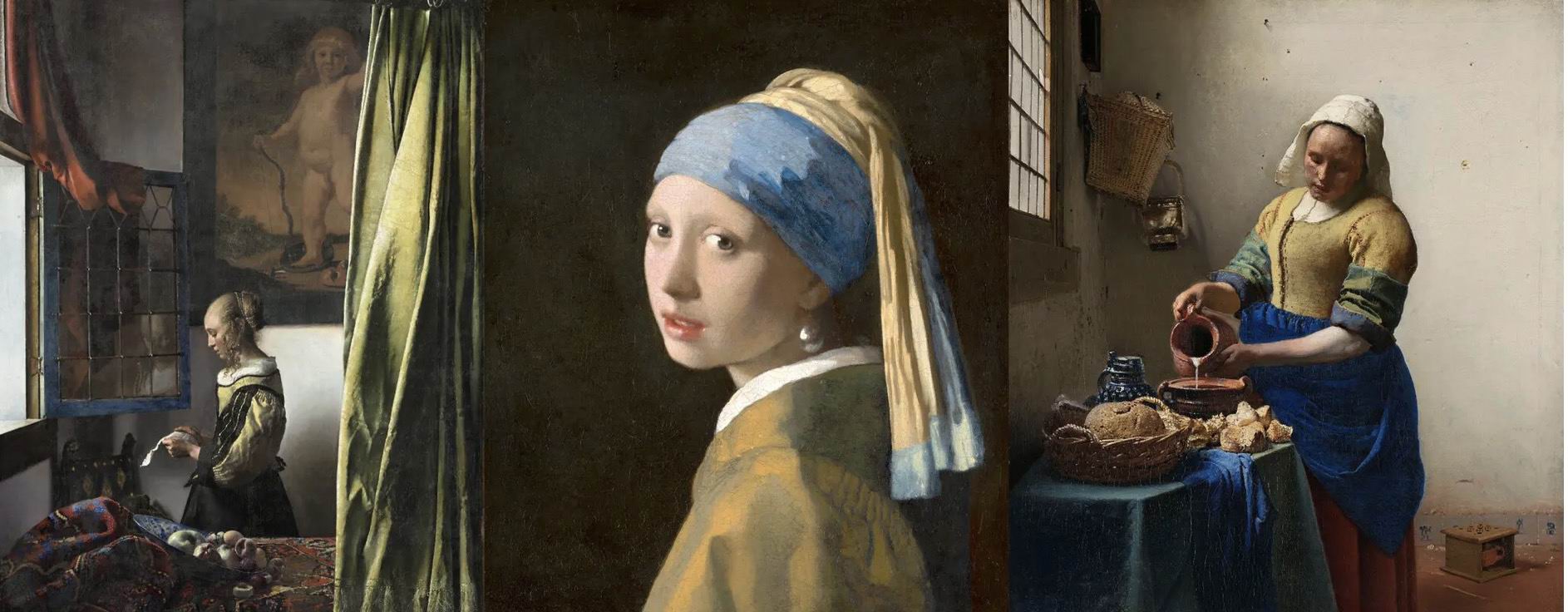 维米尔是17世纪杰出的荷兰绘画大师,迄今为止归于他名下的画作只有34幅,此次展览将展出其中的28幅。其中包括伦敦国家美术馆的《坐在维金纳琴前的年轻女子》、巴黎卢浮宫的《蕾丝女工》阿姆斯特丹国立博物馆藏《倒牛奶的女仆》《小街》《情书》以及海牙莫瑞泰斯皇家美术馆藏维米尔最著名的作品《戴珍珠耳环的少女》。