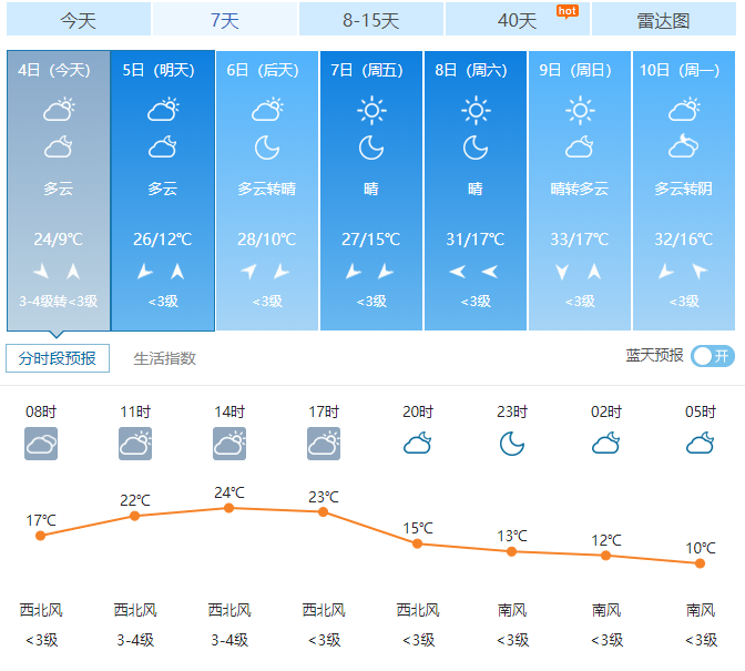 9日:全省晴天转多云。
