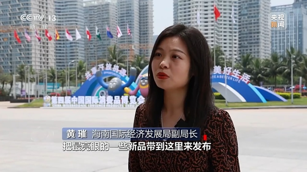 海南国际经济发展局副局长 黄璀:我们希望更多全球品牌把最亮眼的一些新品带到这里来发布。让他们更好跟中国消费市场进行对接,当然我们也希望中国的消费精品,通过消博会新品发布舞台,让全世界看到我们一些非常优秀的消费精品,通过海南自贸港、通过消博会这个平台走向全球。