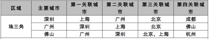 佛山的第一关联城市是广州,而广州的第一关联城市是深圳,深圳的第一关联城市是上海。对广州来说,第四关联城市才是佛山;对深圳来说,第二关联城市才是广州。所谓“我本将心照明月,奈何明月照沟渠”,可以用来形容珠三角城市的关系图。