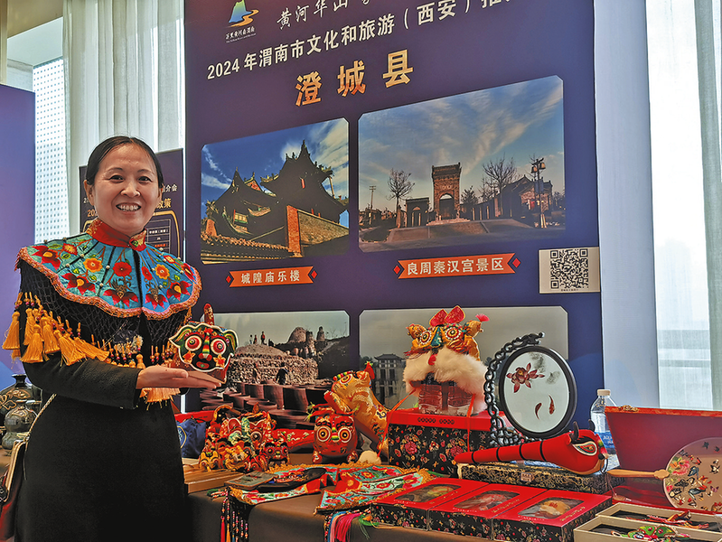 澄城非遗传承人展示特色刺绣非遗产品
