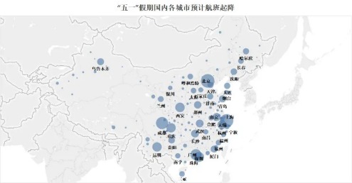 “五一”假期,预计国内有39个城市的机场起降架次在1000架次以上,北京以9835个起降架次位列第一,上海、成都、广州分列第二至四位。
