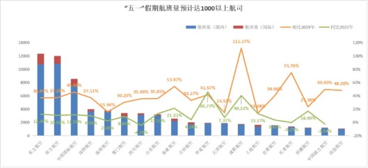 趋势三:19家航司航班量超1000,东航航班量排名第一