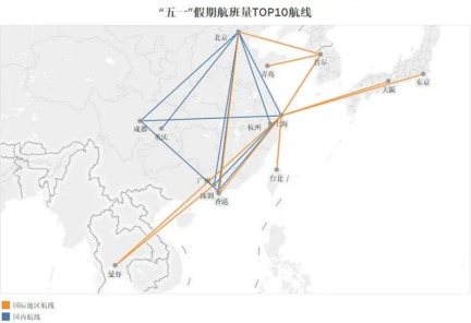 “五一”假期,国内往返航班量前十航线预计仍是围绕北上广深以及蓉杭渝等一二线城市的航线。
