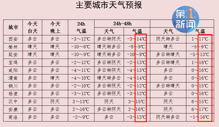 3日:陕北、关中多云,陕南阴天有小雨,秦巴山区有小雪。