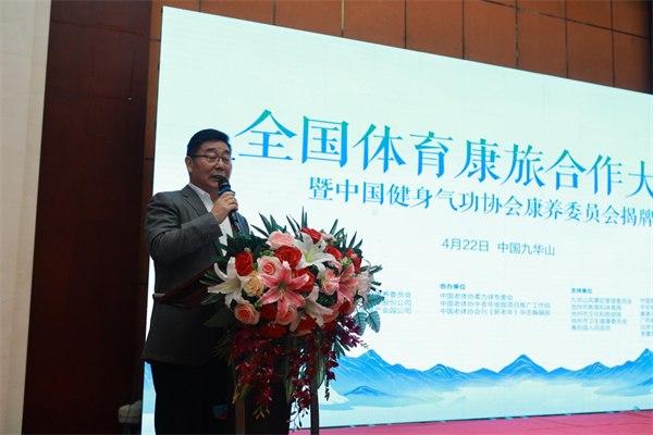 4月22日,由中国健身气功协会康养委员会、安徽新老年健康科技股份公司、安徽九华健康体育产业园公司主办,中国老体协柔力球专委会、中国老体协会刊《新老年》杂志编辑部协办的“全国体育康旅合作大会”在安徽省池州市九华山风景区嘉润凯莱大饭店三楼会议室隆重召开。