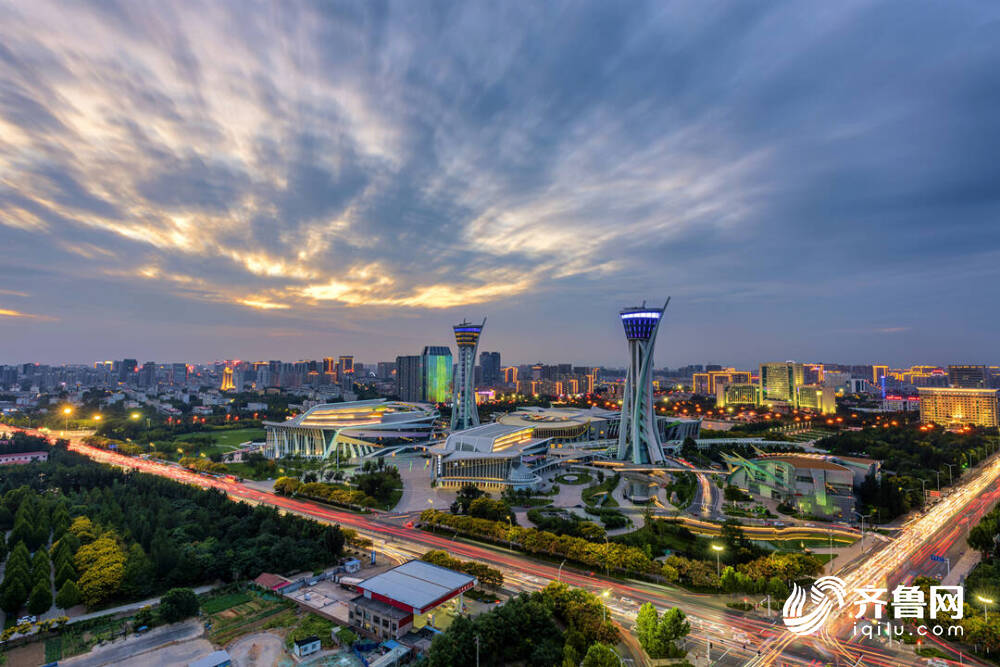 图/全力提升城市能级和品质,潍坊市获批国家第一批城市更新试点。这是潍坊市人民广场日暮时分的景色。