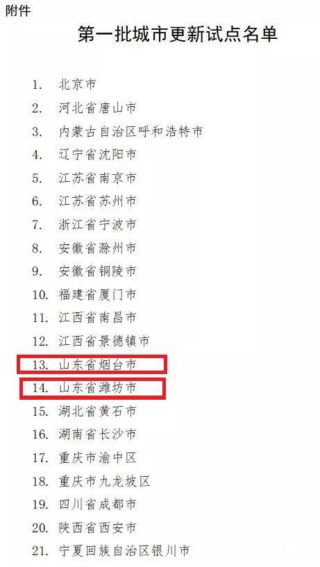 闪电新闻记者了解到,今年3月,住房和城乡建设部开展城市更新试点城市申报,先后经过组织推荐、专家评审、现场查看、审核复核、遴选确定等多个环节和程序,历时8个月,首批试点名单正式公布。其中,山东省烟台市、潍坊市成功入选首批试点城市。