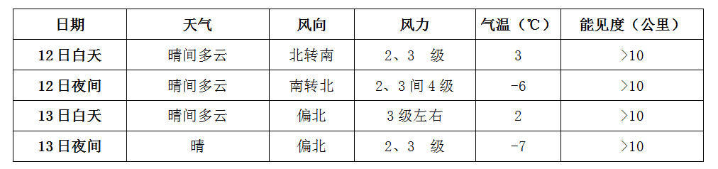 受弱冷空气影响,预计12日至13日,北京地区天气以晴为主;12日夜间至13日白天有3级左右偏北风。期间能见度总体较好,气温较低。具体预报如下: