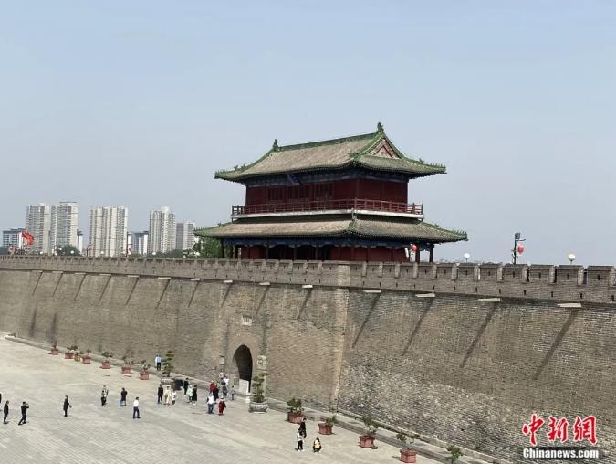 图片图为站在南城门城墙远眺古城。中新网记者 李玉素 摄