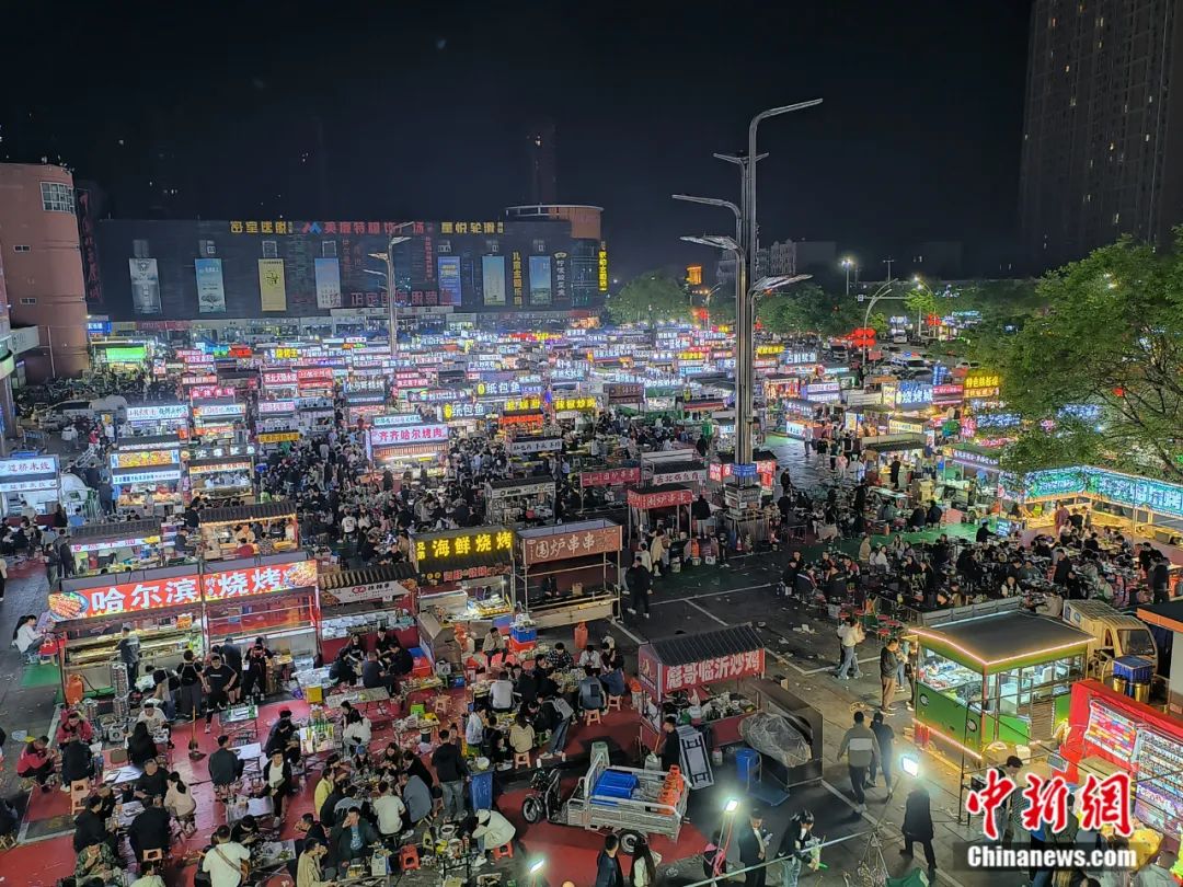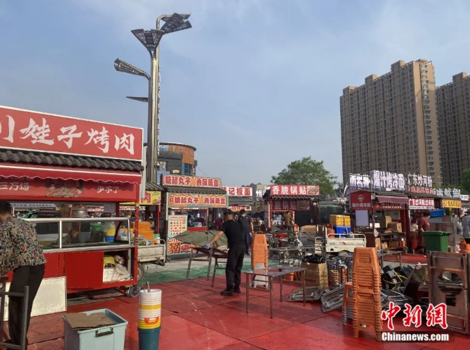 图片图为摊主们正在摆摊准备营业。中新网记者 李玉素 摄