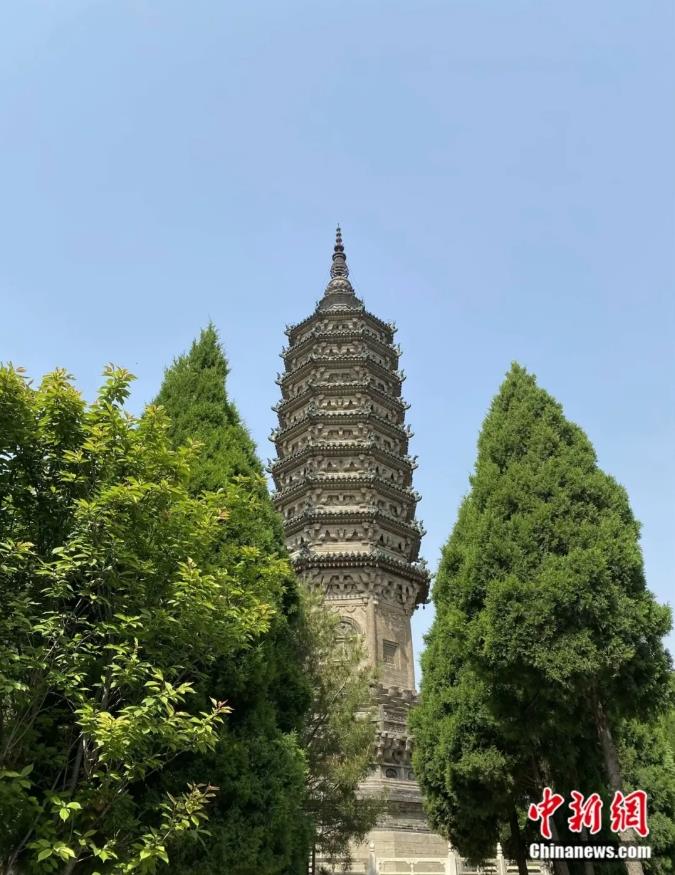临济寺澄灵塔为九层密檐式,通高30.47米,因其全部由砖石砌成,通体呈青色,俗称“青塔”。