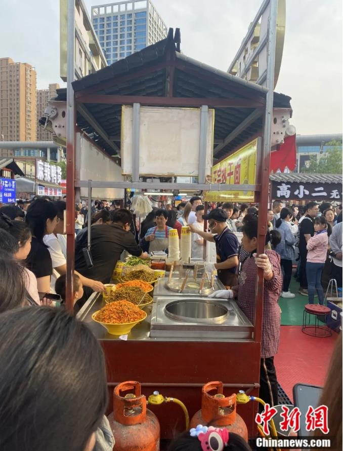 图片图为游客正在排队购买“热干面”。中新网记者 李玉素 摄