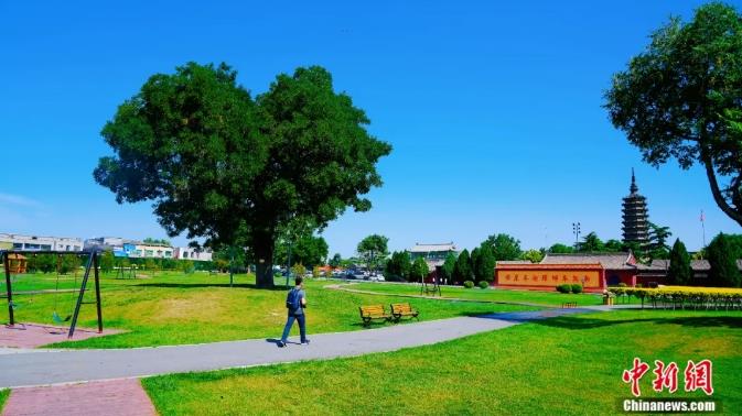 图片图为正定临济寺前“网红打卡地”——爱心树。曹曼琪 摄