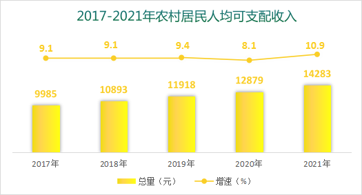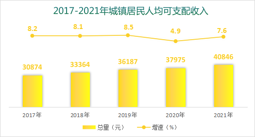 据城乡一体化调查,全年全体居民人均可支配收入26525元,比上年增加2245元,增长9.2%。按常住地分,城镇居民人均可支配收入40846元,较上年增加2871元,增长7.6%;农村居民人均可支配收入14283元,较上年增加1404元,增长10.9%。城乡居民人均收入比为2.86,较上年缩小0.09。