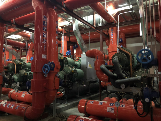 水源热泵技术是指利用地球水体作为冷、热源,进行能源转换迁移的空调技术。通俗地讲,夏天利用地球水体自然散热后的低温水作为冷源,冬天利用地球水体所储藏的太阳能资源作为热源,分别为建筑供冷供热。在长沙,当环境温度达到35℃时,地表水资源温度约为30℃,最高温差甚至可达7℃,能源中心通过提取湘江水作为空调系统冷却水,通过热泵把室内多余的热量“搬”到湘江冷却水里;当室外温度为0℃时,湘江温度约为9℃,能源中心通过输入少量的电能提取湘江水中的热能制取热水,再把湘江水的热量“搬”给建筑物供暖。这种取暖方式,既解决了燃煤锅炉的污染,又减少了对燃气和电力的消耗,同时不会对本地环境造成污染,无燃烧、无排烟、无废渣、无废水废气,可以说是集经济、节能、环保于一体。