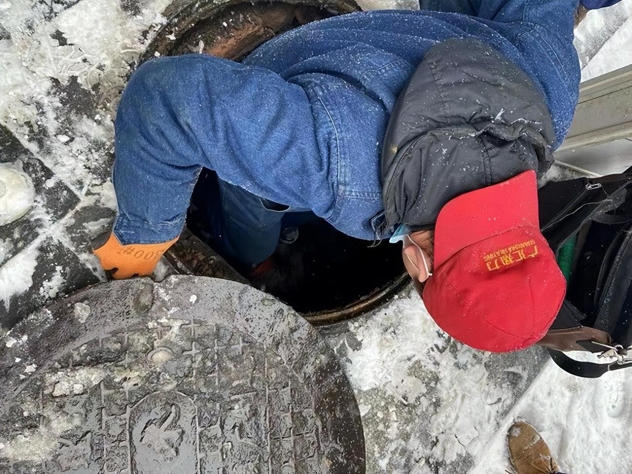广汇热力四分公司维修工下井排查安全隐患。