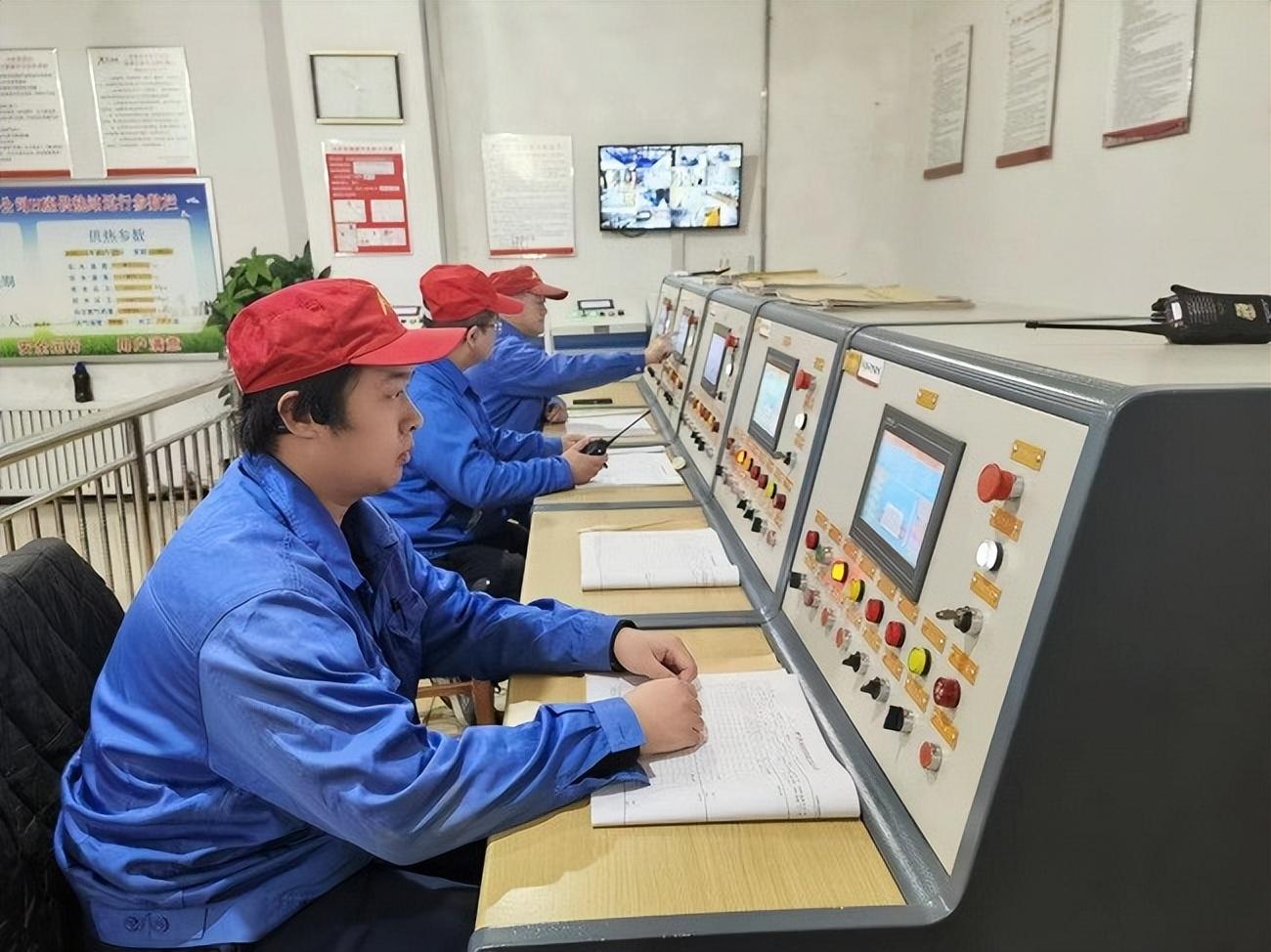 广汇热力汇新分公司中心供热站控制室显示锅炉运行情况。
