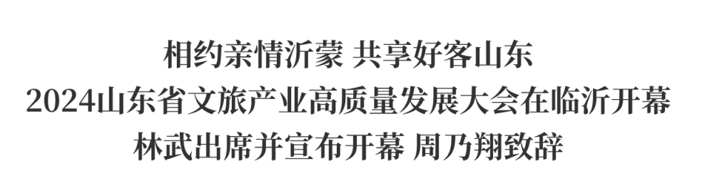 周乃翔在致辞时说,习近平总书记强调,要坚持以文塑旅、以旅彰文,推动文化和旅游融合发展,让人们在领略自然之美中感悟文化之美、陶冶心灵之美。本次大会在沂蒙精神的主要发源地临沂举办,是深入贯彻落实习近平总书记重要指示要求的具体行动,必将为推动我省文旅产业高质量发展、加快现代化强省建设注入强劲动力。