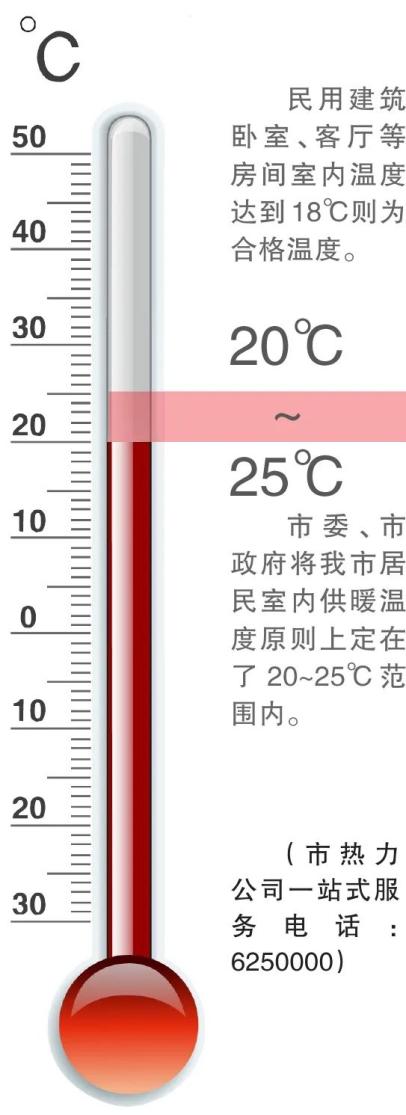 尹春介绍说,关于供暖温度标准,我市一直执行国家标准:室内温度需符合《采暖通风设计规范》、《室内空气质量标准》以及《住宅设计规范国家设计标准和规范》,民用建筑卧室、客厅等房间室内温度达到18℃则为合格温度。