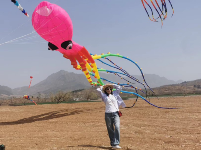 假期到平谷千亩梯田 乐享晴空放“纸鸢”