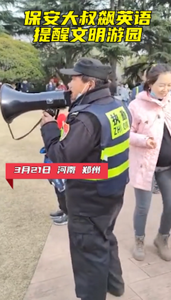 郑州一保安大叔用豫式英语提醒文明游园爆红网络