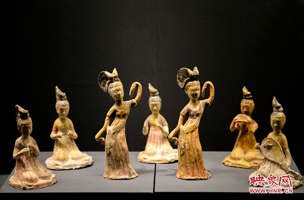 正在郑州大象陶瓷博物馆展出的“丝路天籁——汉唐宋元丝路乐舞文物展”上,两汉、隋唐、宋元等时期的280多件(套)乐舞文物集中亮相,吸引了不少观众前来参观。【】