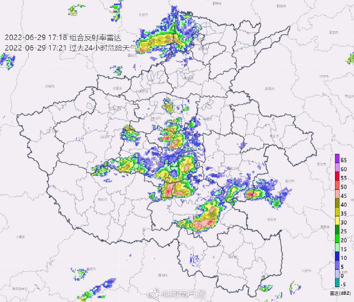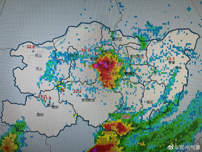 6月29日,据郑州气象获悉,目前荥阳南部回波东移,影响郑州市二七区,中原区,高新区。