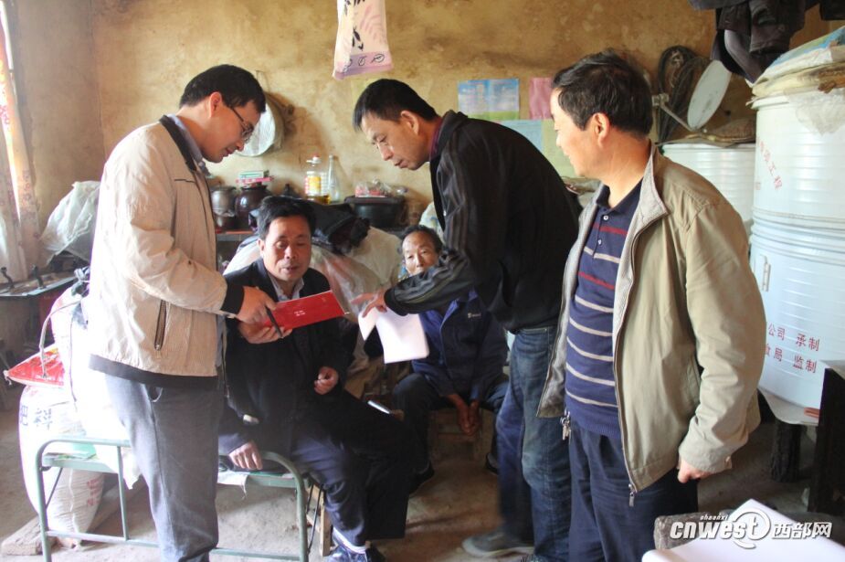 孙关银居住的房屋,锅灶、炕占了一半,粮仓、农资占了一半,夯土地面凹凸不平。墙上醒目的位置张贴着各项扶贫政策资料,一张麟游县干部帮扶贫困户公示卡上显示,帮扶干部是麟游县统计局科员黄鑫,在黄鑫帮扶下,他今年种植小麦20亩、玉米10亩,根据其意愿在铁炉沟移民搬迁点易地搬迁,并引导其子外出打工,联系就业单位,增加工资性收入,通过这些帮扶措施助力其脱贫。