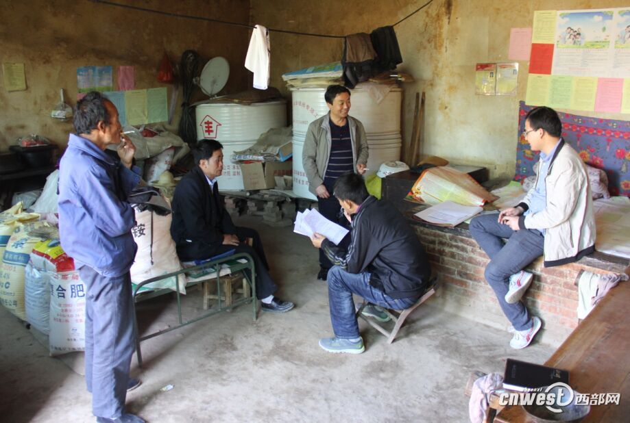 在海家湾组贫困户孙关银家里,工作队核实检查了贫困户建档立卡的信息资料,并对孙关银家的产业发展情况进行核实。