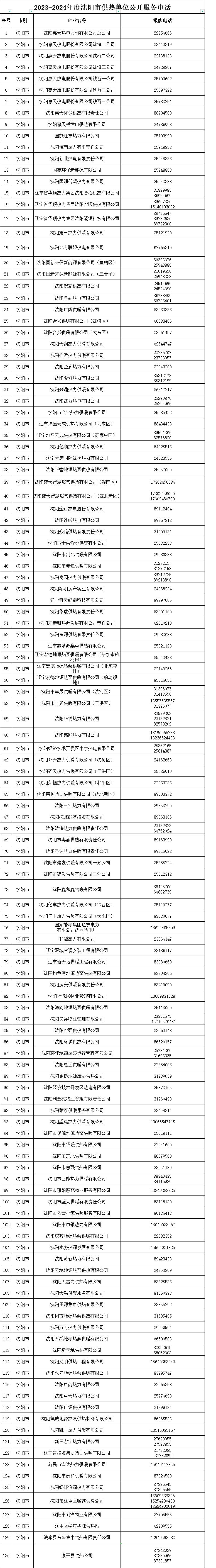 原标题:《沈阳各供热单位公开服务电话公布!》