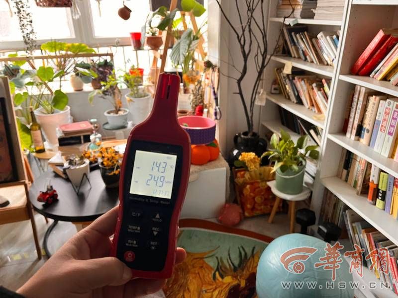 12月20日,西安城区气温-5℃~3℃。华商报记者前往张女士家测温,12时整,她家客厅温度14.3℃。
