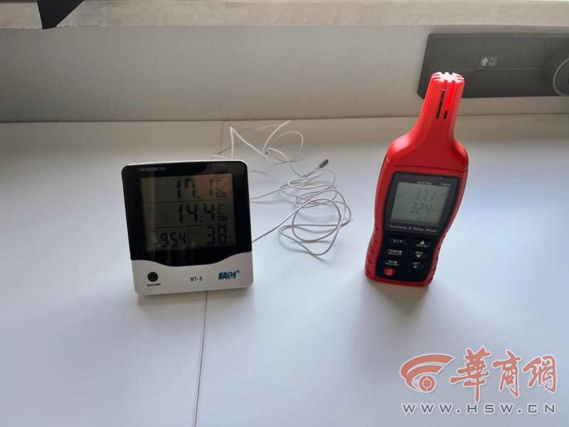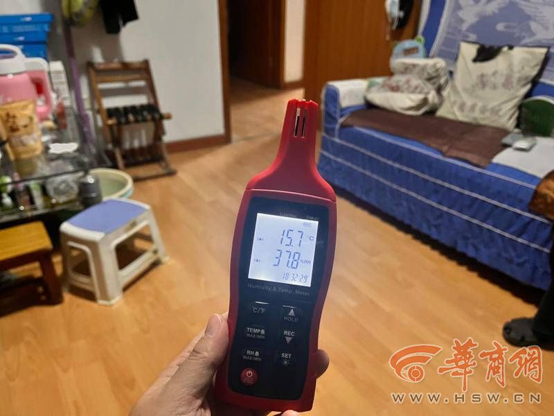 12月21日,西安城区气温-6℃~0℃。早上9点45分,华商报记者在张女士家测温,客厅温度17.4℃,北向卧室17.1℃。测温过程中,有热力公司工作人员正好在单元内,张女士要求现场入户测温,对方表示是日常巡查,并不是来测温。