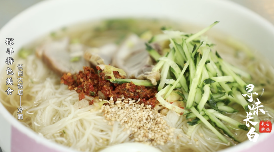 大饭店有五十多年的历史,还保留着过去国营饭店的经营方式,顾客需要凭票自己取餐。考虑到大饭店对长白人的特殊意义,他们尽量保留着过去的传统,不单是冷面的方式,装修和以前一样,连工作人员也有很多是在大饭店干了大半辈子的老员工。在长白,如果你没吃过大饭店的冷面,就不算来过长白。冷面细而有韧性,所有的滋味都浸到汤里,特别美味。一家五十余年的老店、一碗正宗的长白朝鲜族冷面、一种埋藏记忆深处的味道、正温暖着来来往往的食客。