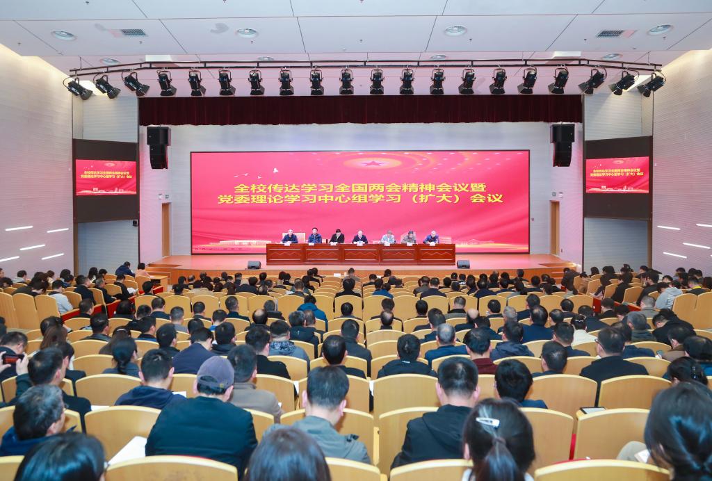 3月14日上午,学校党委在舜耕会堂召开全校传达学习全国两会精神会议暨党委理论学习中心组学习(扩大)会议,传达学习习近平总书记在全国两会期间的重要讲话精神和全国两会精神,部署我校贯彻落实工作。校党委书记郭永存主持会议并讲话。刚从北京载誉而归的全国人大代表、校党委副书记、校长袁亮院士传达全国两会精神,为师生上专题思政课。校党委副书记、常务副校长余玉刚,校党委常委、副校长董雨,校党委常委、纪委书记、监察...