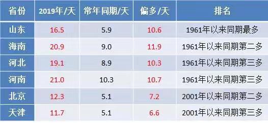 与常年同期相比,上述大部地区高温日数偏多5天以上,其中华北东南部、黄淮大部、江汉、江南西部和中北部、华南中部及云南东北部和东南部、海南等地偏多超过10天。
