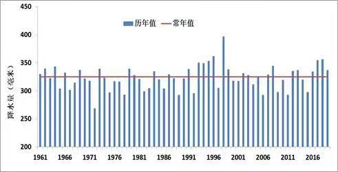 历年6-8月全国平均降水量(1961-2019年)(中央气象台供图)