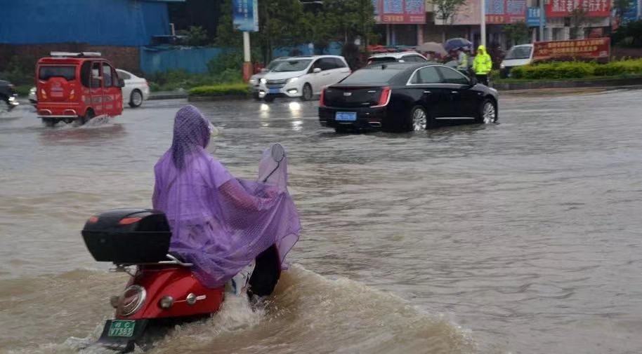 6月6日15-17时,暴雨袭击桂林市灵川县城及周边乡镇,多处道路出现积涝。(中国气象局供图)