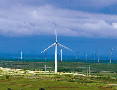 张北坝上草原,“大风车”不停转动,景象蔚为壮观。