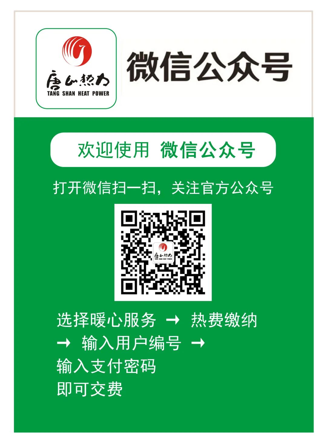 1.唐山热力微信公众号、支付宝、微信钱包缴纳热费