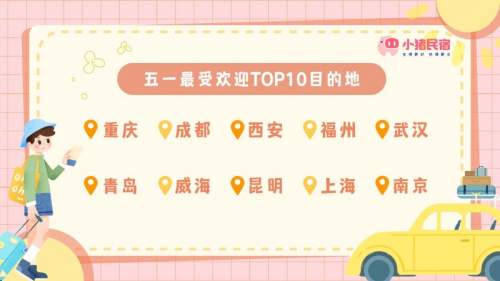 五一小长假圆满落下帷幕,今年假期全国各地人潮涌动,再度上演“人从众”盛况。小猪民宿平台数据显示,今年五一小长假民宿订单量同比去年增长102%,平均入住时长3.2天,重庆、成都、西安、福州、武汉、青岛、威海、昆明、上海、南京成为五一最受欢迎top10城市。