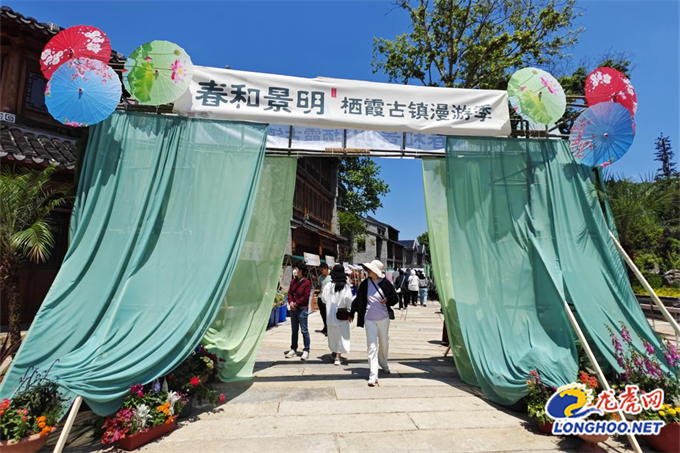 除中医药文化体验之外,栖霞山古镇庙会也热闹非凡。走进古镇,憨态可掬的“栖小喵”跃然于建筑之上,南牌坊的鲜花造景引得游客驻足欣赏,九乡河边“等风来”的空飘也成了栖霞古镇的新看点。