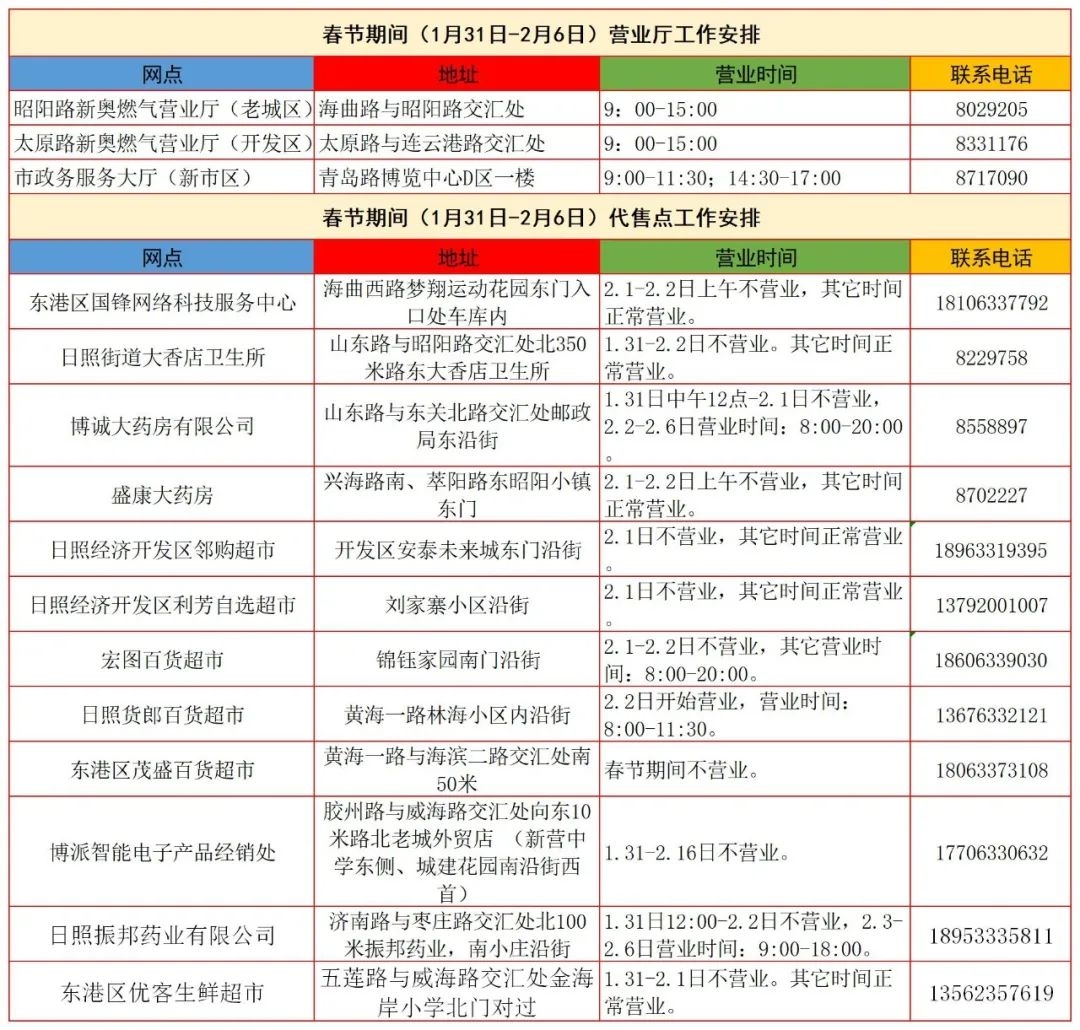 2. 城西营业厅、山海天营业厅春节期间暂停营业。