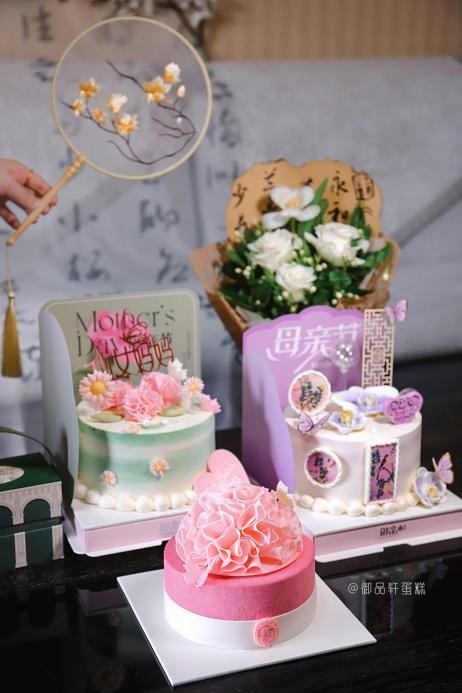 御品轩春晖永绽和遂心如意这两款母亲节蛋糕也是不错的选择,选用山楂燕麦夹层,香草蛋糕胚,口感醇香细腻。其中,春晖永绽以粉色和奶油黄作为主色调,如春光般明媚,而且造型大方,适合气质的妈妈;遂心如意蛋糕则为紫色调,造型优雅娴静,送给妈妈也很合适。另外买母亲节尺寸蛋糕还送美丽三件套(按摩刷、按摩梳、刮痧板),按摩套装和甜蜜美味的蛋糕一起送给最爱的妈妈,一定会让她感受到满满的惊喜。
