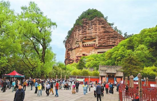 5月1日,天水市麦积山景区游客众多。 新甘肃·甘肃日报记者 田蹊