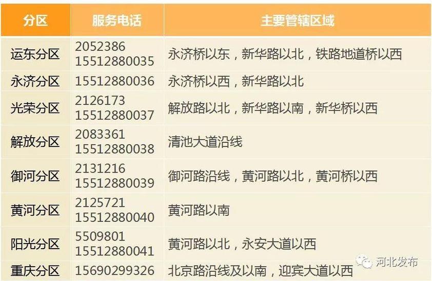 分区服务电话及管辖区域