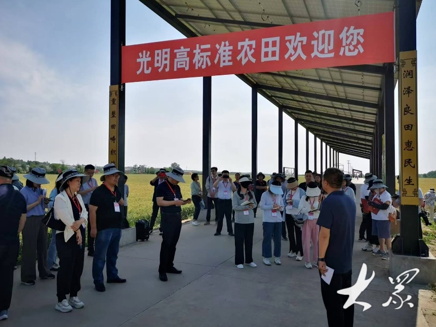 5月20日,“乡村振兴的宝鸡实践”——2024全国农民报全媒体调研采访活动在陕西省宝鸡市启动。20日上午,调研团一行来到宝鸡市金台区光明村高标准农田示范田项目。记者了解到,经过几年努力,这片高标准农田产出的粮食不仅产量高、质量好,而且在农文旅三产融合思路指引下,这里还被成了打造风光秀丽、兼具农耕文化体验、耕地保护、粮食安全、节约粮食等功能于一体的农耕文化体验示范田,“我们不止种庄稼,还在种‘风景’!”金台区农业农村局副局长许维涛表示。