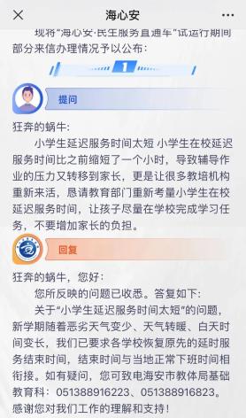 “海心安”工单公开答复